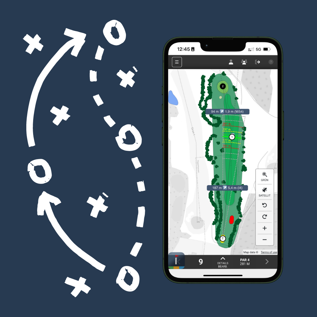 - Putts und Fahne- Editiere deine Putts und die Pin Position direkt auf der Runde (nur 2 Sekunde pro Loch) und reduziere damit deinen Nachbereitungsaufwand um bis zu 90%.